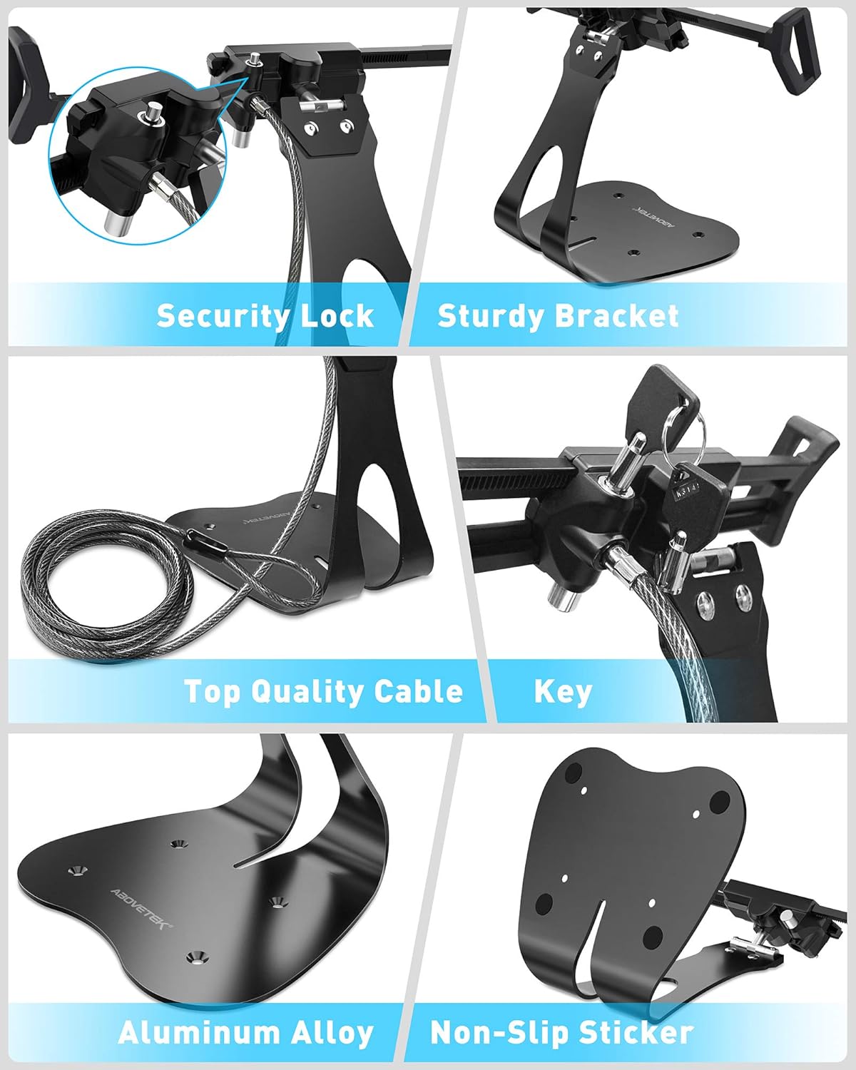 Compatibilité Étendue: Le support de tablette AboveTEK dispose d’un clamp ajustable, accueillant en toute sécurité des tablettes de 7 à 13 pouces, le rendant adapté pour divers comptoirs commerciaux, bureaux, écoles ou utilisations domestiques.
