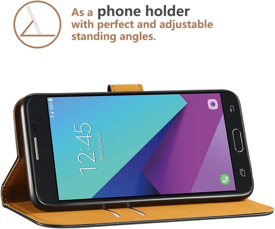 Le Prix Anjoo Coque Compatible pour Samsung Galaxy J3 2017, Housse en Cuir avec Magnetique Premium Flip Case Portefeuille Etui Compatible pour Samsung J3 2017, Noir au Maroc
