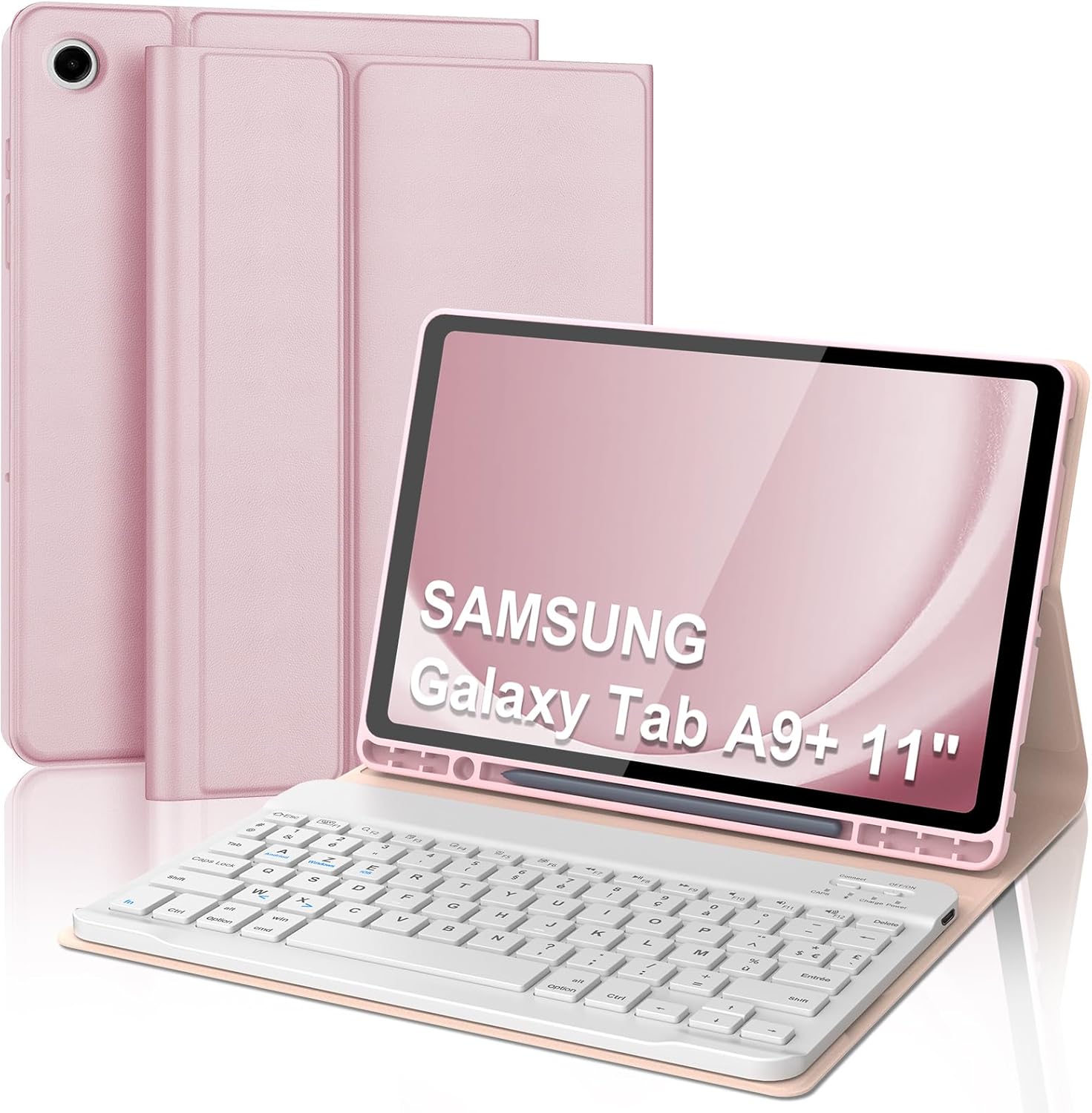 Fiche Technique AZERTY French AZERTY Keyboard Case for Samsung Galaxy Tab A9 Plus/A9+ 11-Inch, Detachable Magnetic Bluetooth Keyboard Cover with Pencil Holder for Samsung Galaxy Tab A9 Plus 11 Inch 2023, Pink au Maroc