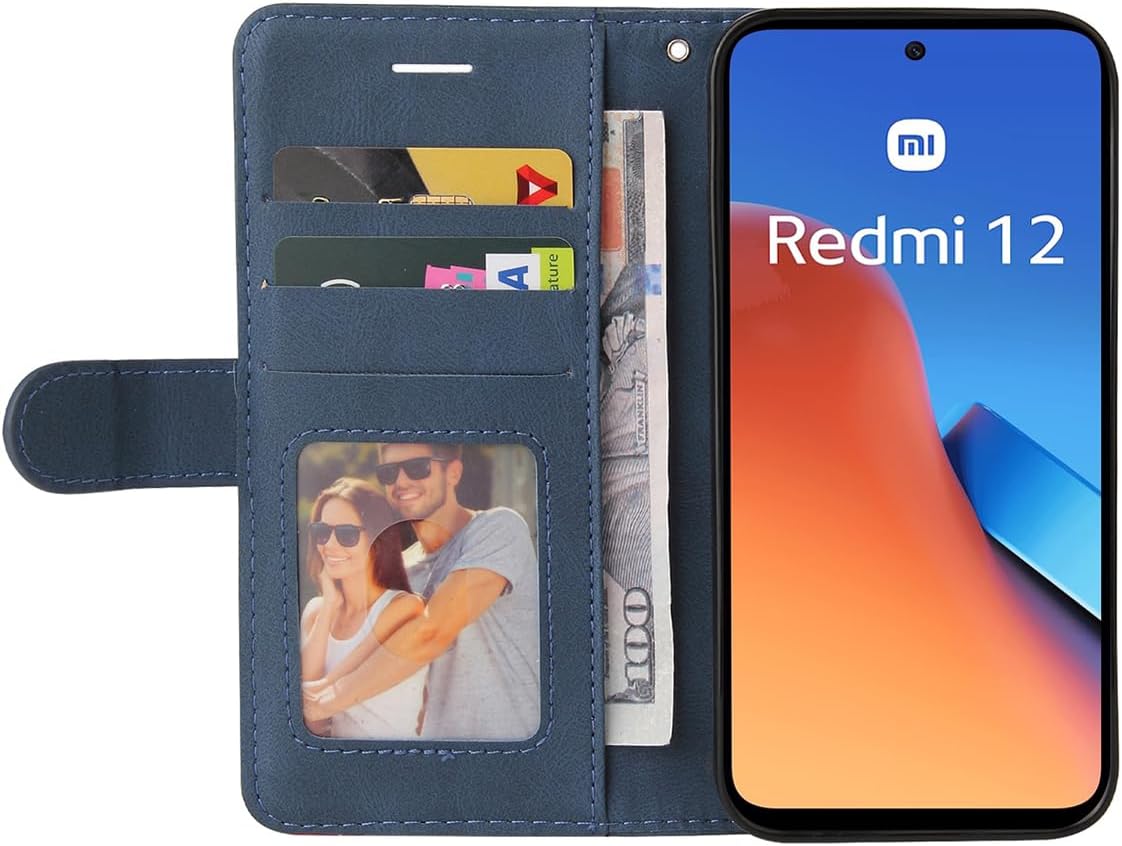 Fiche Technique FHSYCR Coque pour Xiaomi Redmi 12 4G / 5G avec 1 Pièces Verre Trempé, Premium PU Cuir Multifonction Portefeuille à Rabat Antichoc Protection Étui Housse pour Xiaomi Redmi 12 4G / 5G – Bleu au Maroc