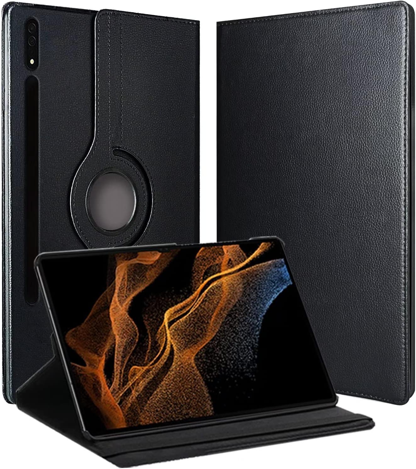 Le Prix HORTENSE Coque Étui à Rabat pour Samsung Galaxy Tab S8 Ultra 14.6″, Case en Cuir PU pour Housse de Téléphone – Le Noir au Maroc