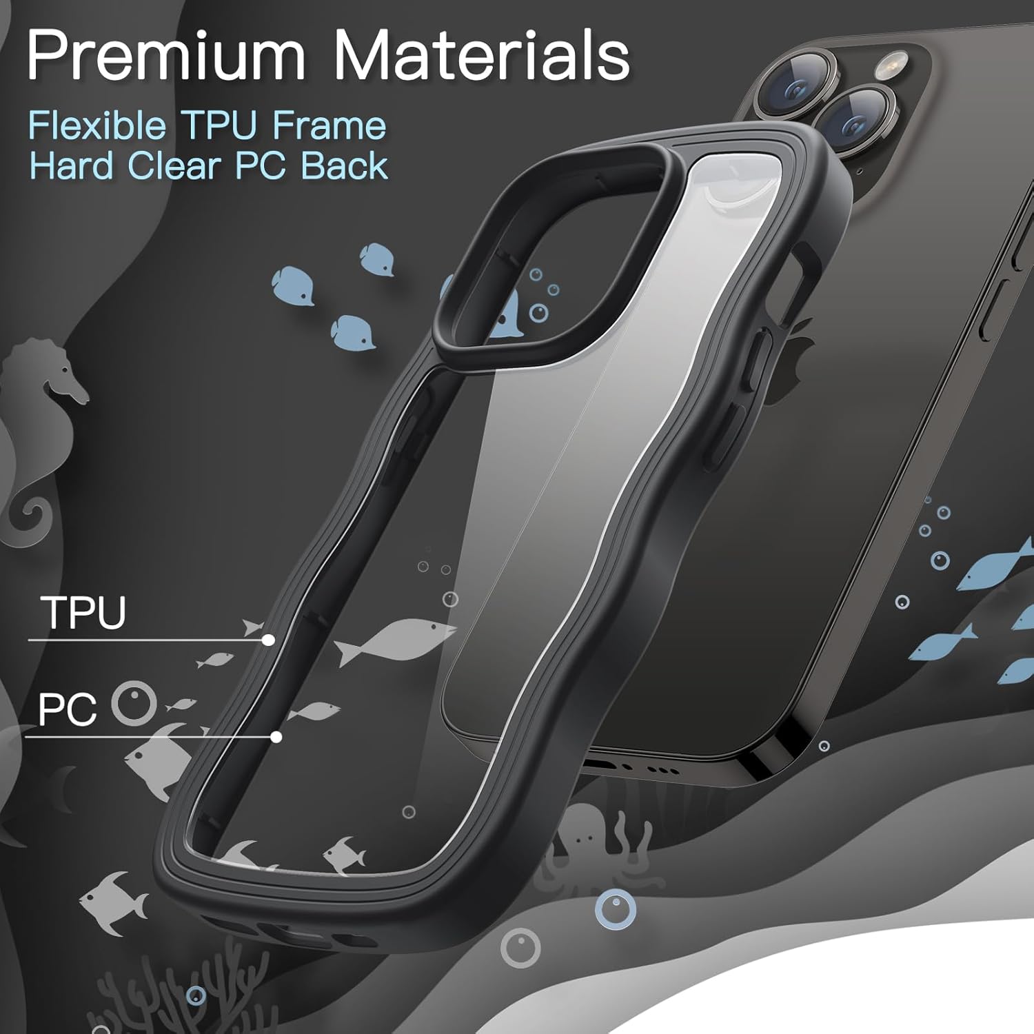 Le Prix JETech Cute Case for iPhone 14 Pro Max 6.7 Inch, Wave Frame Curly Shape Shockproof Case Cover for Women and Girls, Transparent Hard PC Back (Black) au Maroc