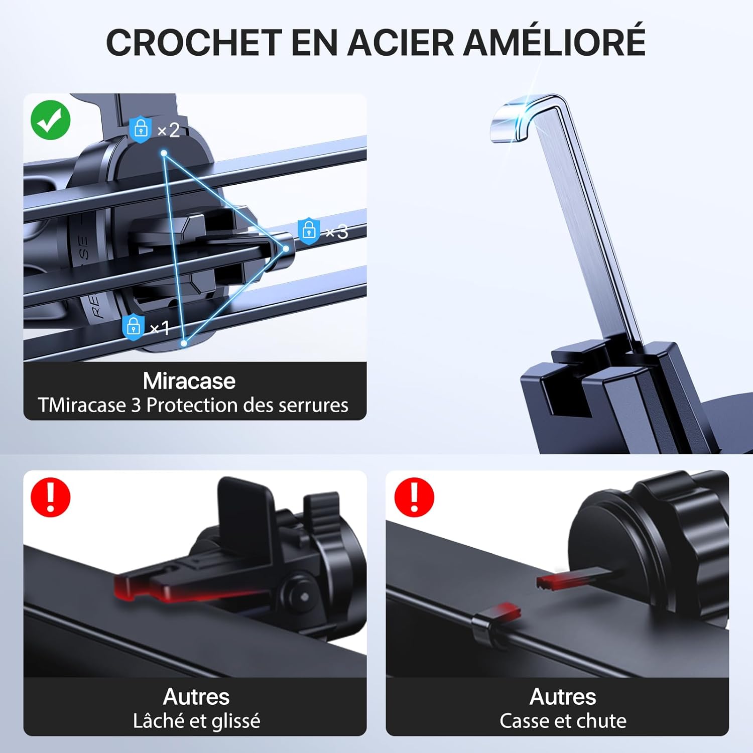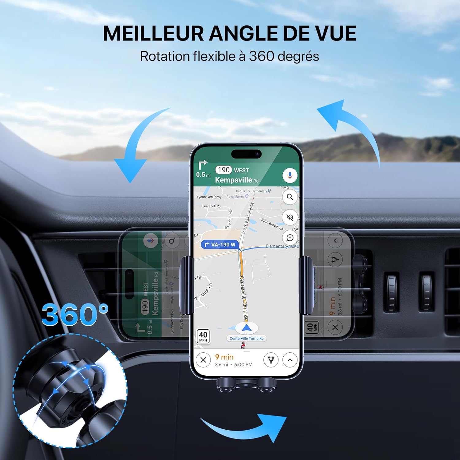 Fiche Technique Miracase [Ultra-Stable Support Telephone Voiture Grille d’aération, Universel [Rotation à 360 °] Porte Telephone Voiture Compatible avec Tous Les Smartphones 4.0”-7.0” au Maroc