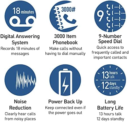 Batterie de secours puissante : avec un combiné sans fil chargé dans l’unité de base, profitez jusqu’à 12 heures de temps de conversation lorsque l’alimentation est coupée ; Nombre de lignes téléphoniques 1