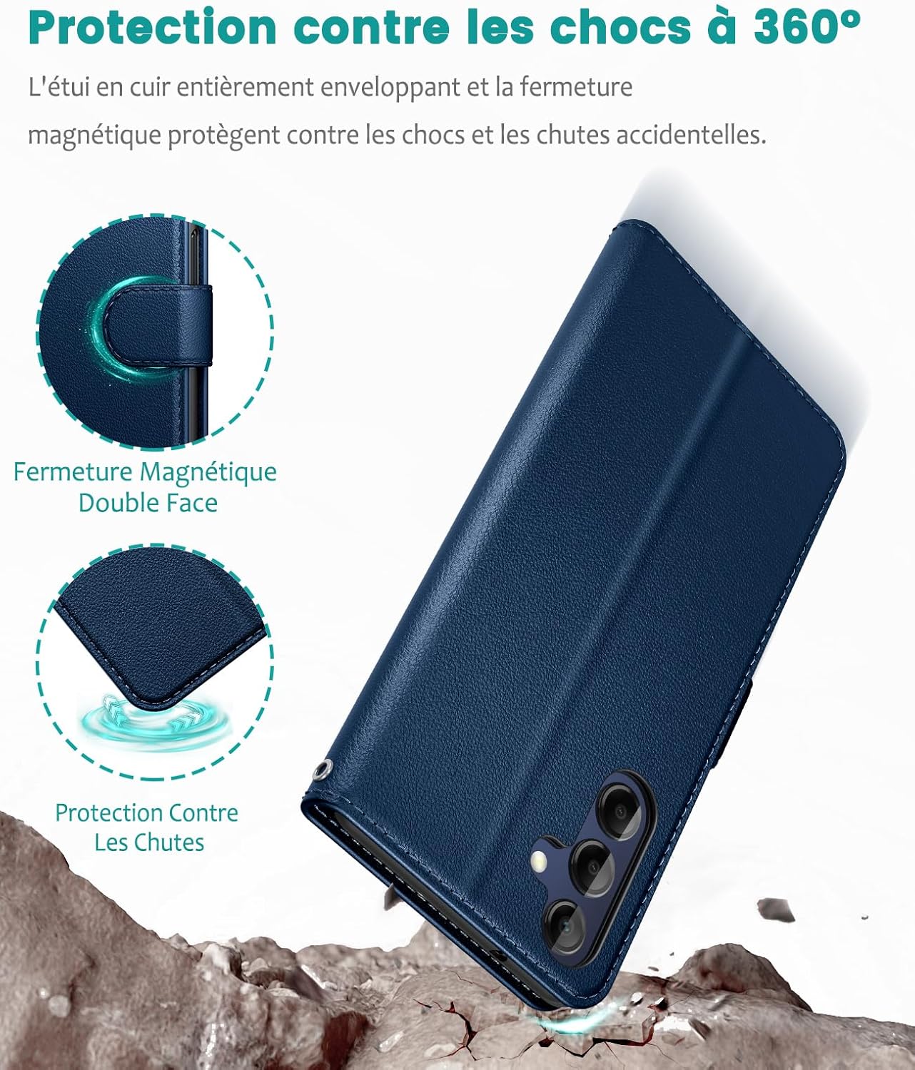 Fiche Technique SineOrdo Coque Samsung Galaxy A15 5G & 4G Coques, Étui Samsung Galaxy A15 5G & 4G Housse Clapet Protection Pochette Antichoc Rabat Case – Bleu au Maroc
