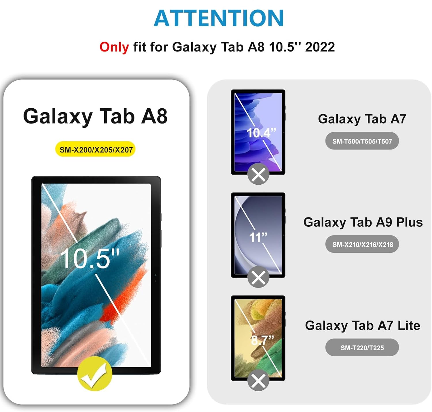 Compatible avec Samsung Galaxy Tab A8 10,5 pouces, ne convient à aucun autre modèle. Veuillez confirmer le modèle avant d’acheter