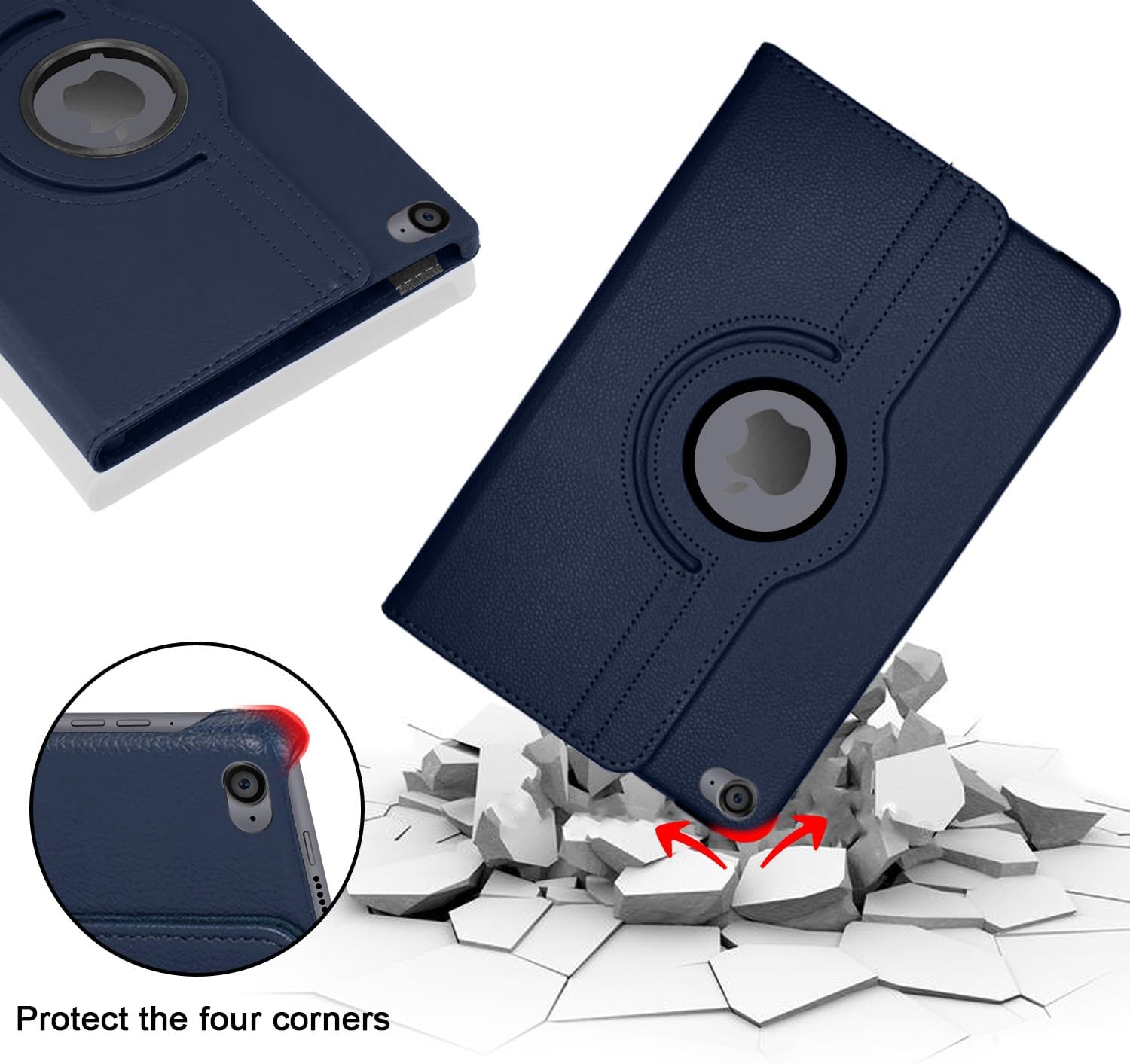 Etui iPad Air rotatif à 360 degrés, avec rainures intérieurs de la couverture, cela permet plusieurs angles de fixation pour voir un film ou chat vidéo, confortable de taper, e-mailen etc.