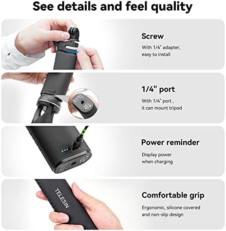 Voici le prix pour acheter TELESIN 35,4″ Power Stick Pole Handler Grip pour GoPro Phone Mirrorless Camera, Extension Étanche Grande Capacité Chargeur de Batterie Station Bank Supply