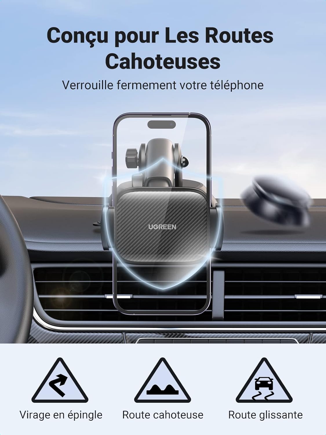 Fiche Technique UGREEN Support Téléphone Voiture Ventouse Tableau Bord Porte Smartphone Voiture Rotation 360 Degrés Pose Portable Pare Brise Compatible avec iPhone 15 Plus Pro Max 14 13 12 Galaxy S23 Redmi (Noir) au Maroc