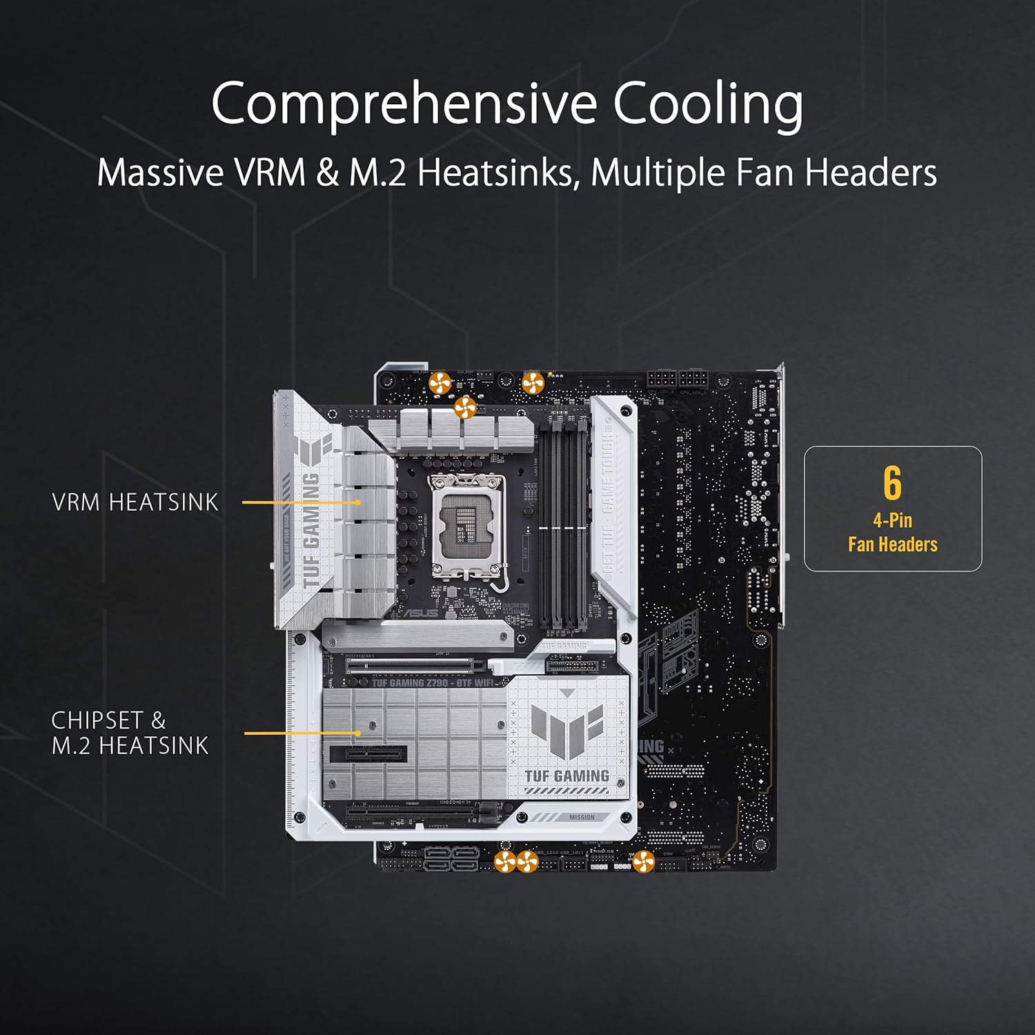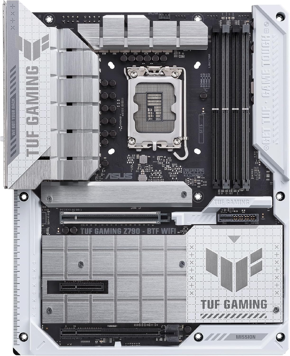 ASUS TUF GAMING Z790-BTF WIFI – (Intel® 14e, 13e et 12e génération), carte mère LGA 1700 ATX, 16+1+1 étapes de puissance, PCIe® 5.0, mémoire DDR5, quatre emplacements M.2, WiFi 7 et Ethernet Intel 2,5 Go, USB frontal 10 Gbps, SATA 6 Gbit/s. et tête Thunderbolt™ 4