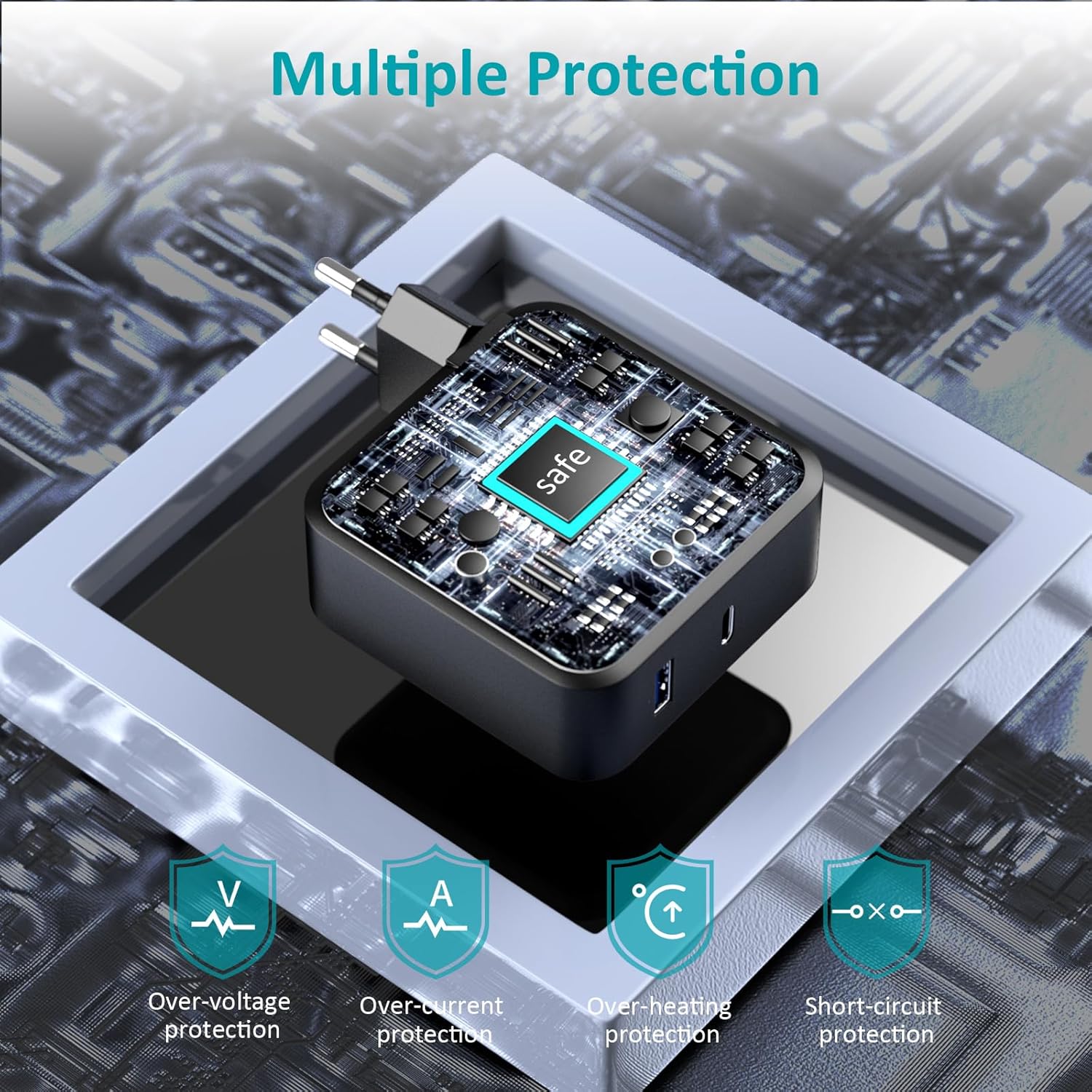 Sécurité garantie : Notre chargeur usb c ordinateur portable dispose de multiples fonctionnalités de protection pour garantir une charge en toute sécurité. Il est équipé d’une protection contre les surintensités, les surtensions, les surchauffes et les courts-circuits, ce qui protège non seulement vos appareils, mais aussi votre tranquillité d’esprit.