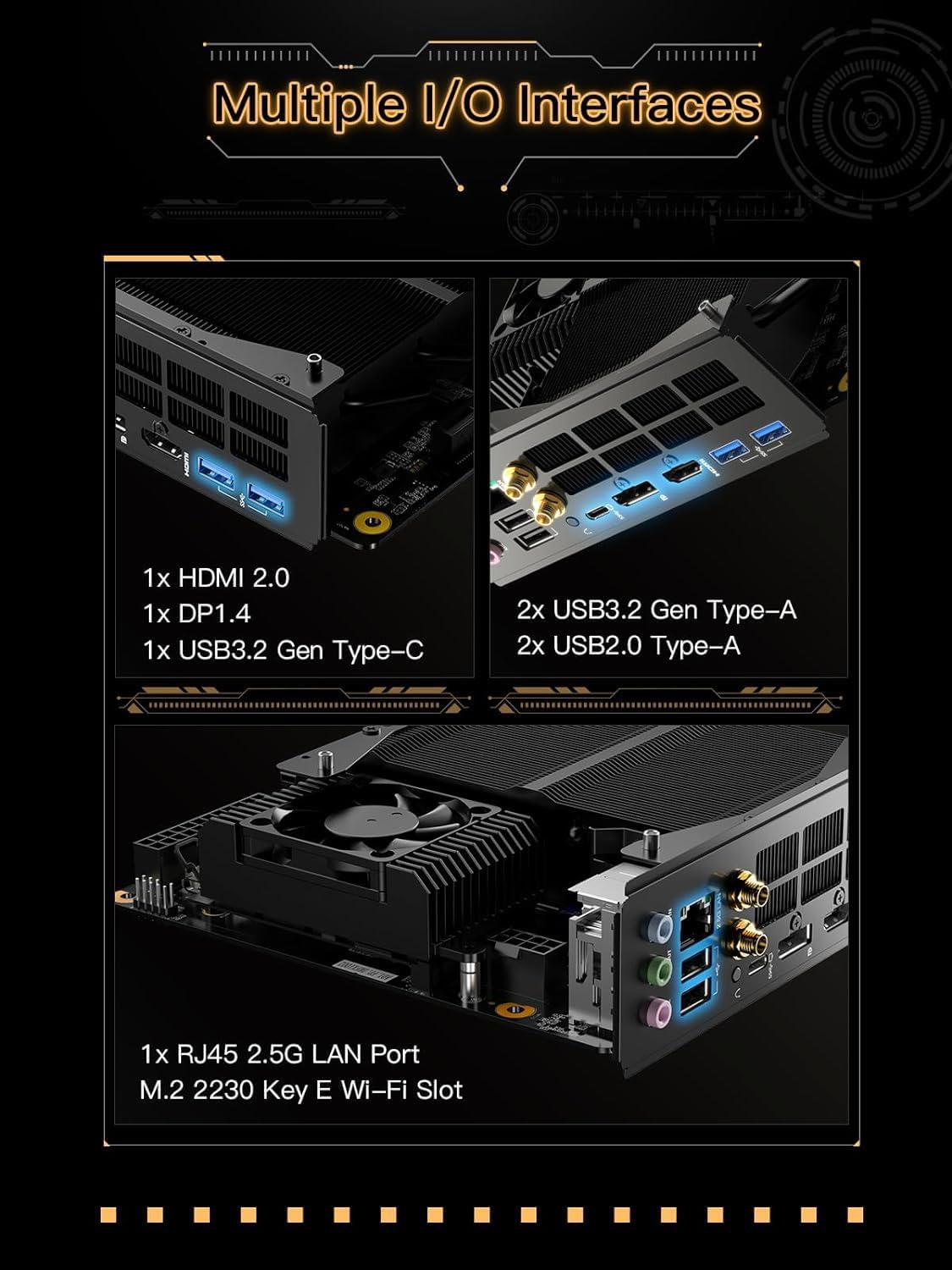 【Triple sortie vidéo】La carte mère AR900i dispose de trois sorties vidéo, une USB-C, une HDMI et une DP1.4. Il vous offre un champ de vision plus grand et plus large et améliore votre efficacité de travail, et peut également augmenter la sensation d’immersion lorsque vous jouez à des jeux.
