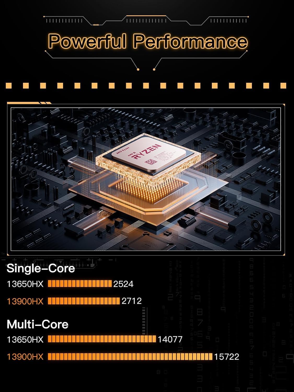 【Excellente performance】la carte mère MINIS FORUM AR900i est livrée avec un processeur Intel Core haute vitesse et haut de gamme pour ordinateur portable Intel Core i9-13900HX. Avec 24 cœurs et 32 threads, la vitesse de boost maximale peut atteindre 5,4 GHz. Avec Intel UHD Graphics (fréquence graphique jusqu’à 1,65 GHz), il peut offrir des performances écrasantes et des effets visuels époustouflants.