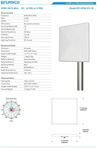 Avis sur Tupavco TP544 WiFi Panel Antenna (5GHz) (22dBi) Outdoor Directional (4900-5850 MHz) Wireless Network Signal (Pole Mast Mount) Weatherproof High-Gain Long Distance Range (N-Female Connector)