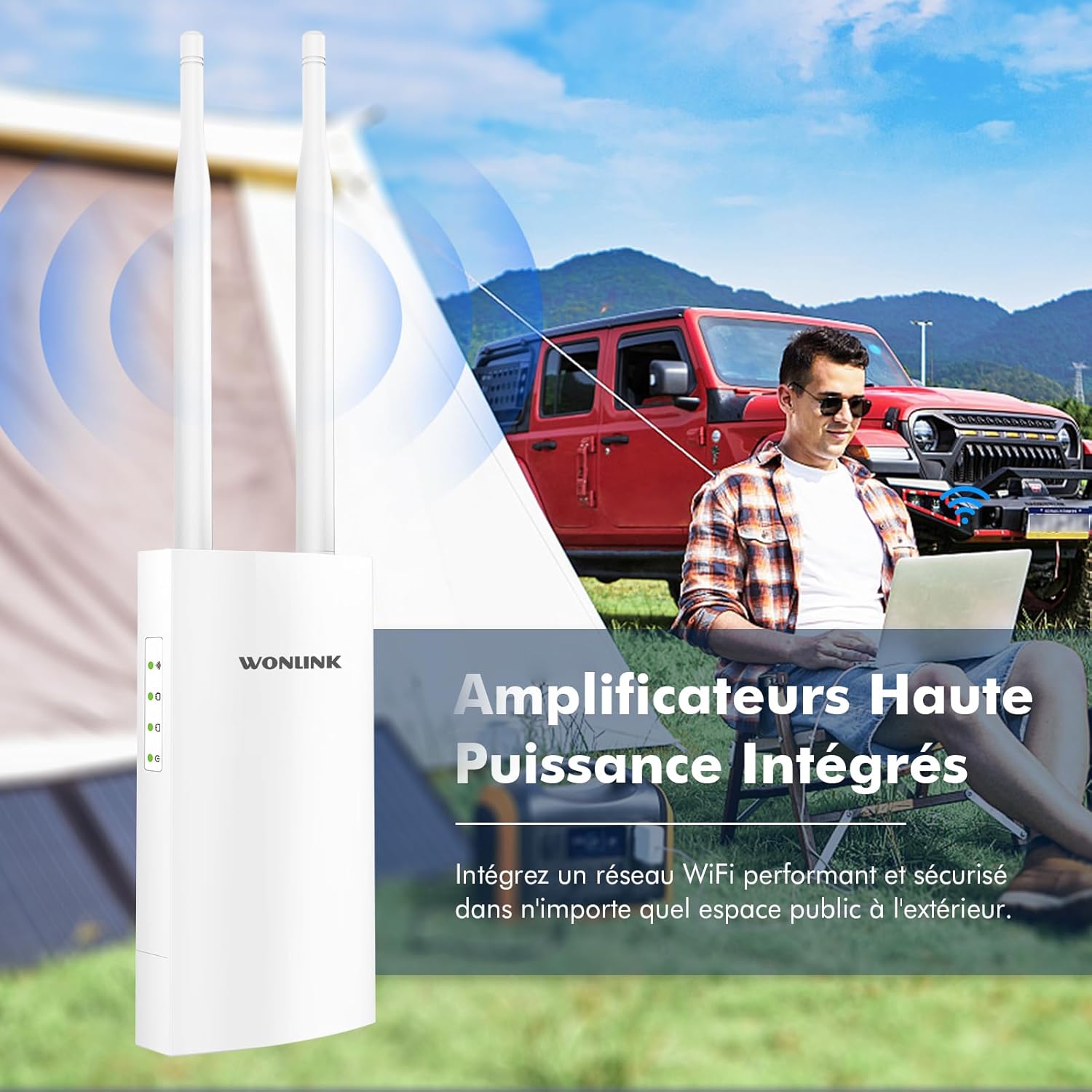 【Haute Performance】: Le repeteur WiFi puissant exterieur est livré avec deux antennes à haut gain pour fournir une couverture WiFi à votre jardin, patio ou tout autre espace extérieur. Grâce à la technologie avancée MU-MIMO, cet amplificateur WiFi délivre un signal WiFi fort et stable, même sur de longues distances