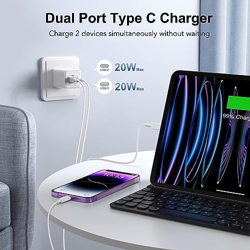 Voici le prix pour acheter 【2023 Nouveau】 Chargeur mural USB-C 40 W, [MFI Certified] Adaptateur de prise de bloc de charge rapide USB Type C double port 20W PD 3.0 avec câble de charge de 2X6FT pour iPhone 14 13 12 11 Pro Max, iPad Pro, Samsung Galaxy