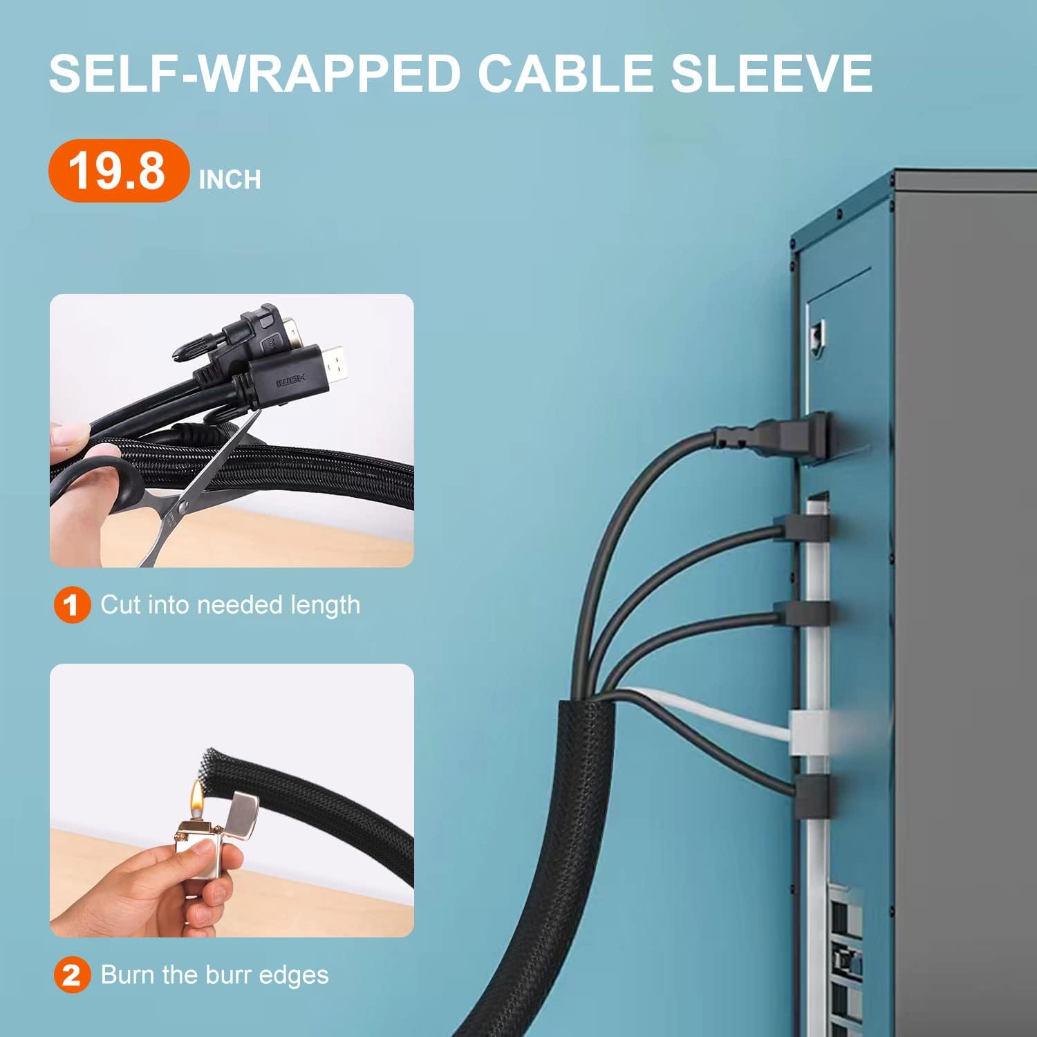 EASY TO USE Each component of this cable manager kit is easy to use, no drill or tool is required. Cut the split cable sleeve to the right length, wind the wire and hide the cable on a dark surface. Use your own adhesive cable tie or zipper to organize multiple cables. Peel off the tape and stick to almost any clean surface