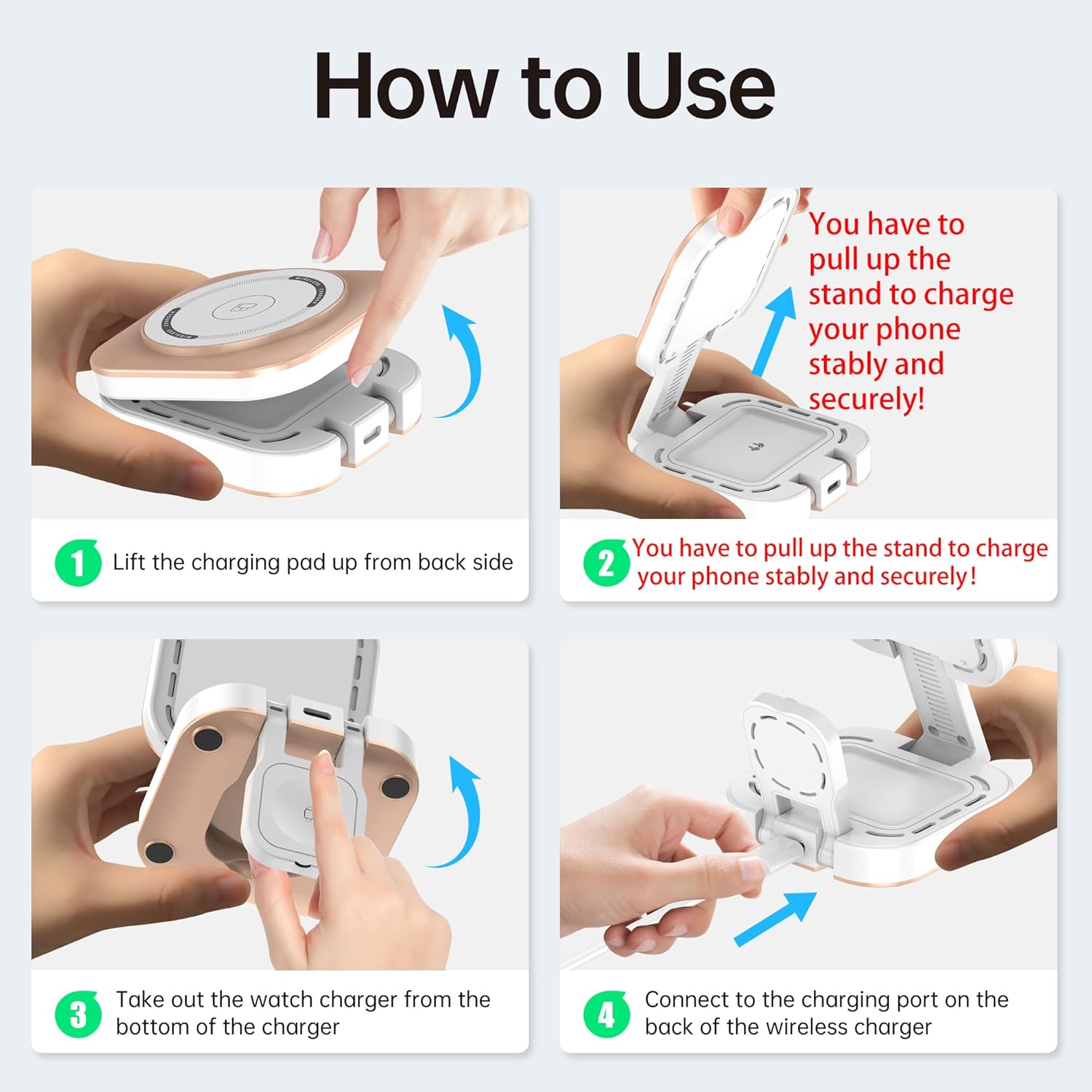 【Advanced Plastic Materials & High Durability】Our mini Mag-Safe foldable charger is made from advanced plastic materials, which dissipate heat quickly. Our Mag-Safe wireless charging station is equipped with an advanced chip for fast, more efficient and safer charging. In addition, this material is environmentally friendly. Made from these state-of-the-art plastic materials, our Mag-Safe Wireless Charger is extremely durable. When your devices are fully charged, it automatically switches to maintenance charging mode to avoid overcharging during the night. Any questions, please feel free to contact us!