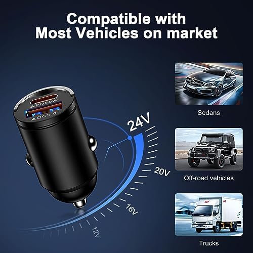 Port de charge rapide Daul : équipé d’un port USB A (QC18W) et d’un port USB C (PD30W), le chargeur de voiture USB C à charge rapide peut charger deux appareils simultanément, sans baisse de puissance, même en cas de charge rapide simultanée grâce à sa puce de protocole PD et QC3.0 indépendante. .