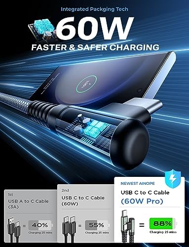 Avis sur AINOPE Câble de chargeur USB C vers USB C 60 W, lot de 2 câbles de charge de type C à angle droit, câble de charge rapide USBC vers USBC pour Samsung S23 S22 S21 Note 20 Ultra, iPad Pro 12.9 Air Mini MacBook Air