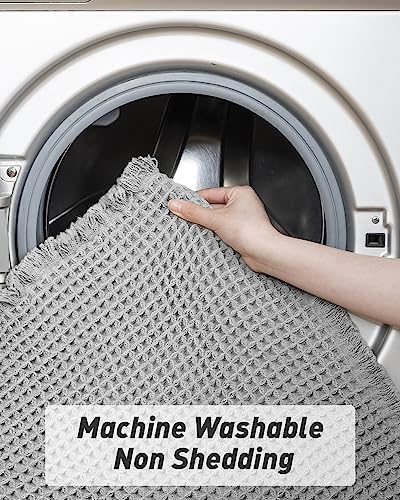 Le Prix AMOAMI Tapis de bain gaufré amélioré, super absorbant, antidérapant, pour sol de salle de bain, lavable en machine avec pompons, tapis de salle de bain avec envers en caoutchouc, ultra doux, 61 x 91,4 cm, gris
