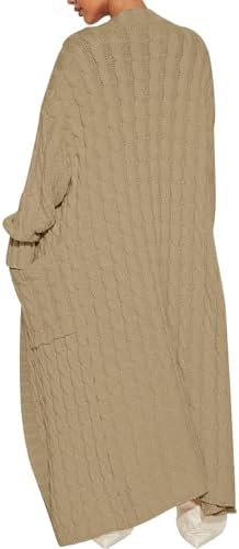 Design : manches longues, ouvert sur le devant, cardigan en tricot torsadé, couleur unie, longueur au sol, tricot épais, style décontracté, manteau pull surdimensionné pour l’automne et l’hiver. Les vêtements d’extérieur chauds en tricot pour l’automne et l’hiver créent une silhouette ample et décontractée.
