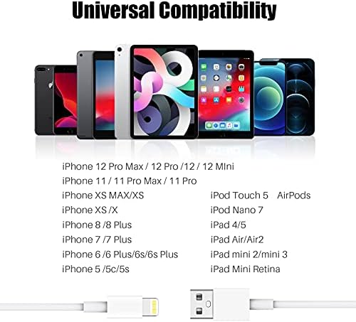 【Compatibilité massive】 Câble de chargeur iPhone pour iPhone 13 Pro Max/iPhone 12 Pro Max/12 Mini/12/iphone xr/iphone xs/xs max/iphone x/iphone 11/iphone11 pro/iphone 11 pro Max, iPhone 8/8 De plus, iPhone 7/7 Plus, iPhone 6s Plus/6s/6 Plus/6, iPhone 5s/5c/5/SE/iPad Pro/Air/Mini et plus encore.