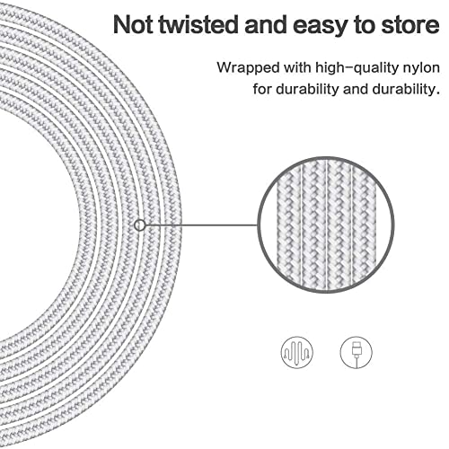 Avis sur [Apple MFi Certified] Lot de 5 câbles de chargeur Lightning en nylon tressé pour iPhone 14Pro/14/13Pro/13/12Pro/12/11 et plus – Argent et blanc (3/3/6/6/10 pieds)