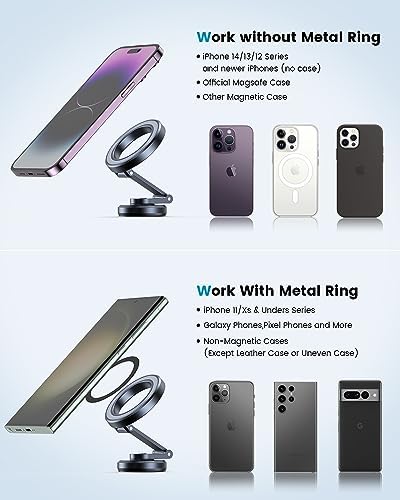 Avis sur APPS2Car Compatible avec le support de voiture MagSafe, support de téléphone magnétique pliable pour voiture, support de téléphone portable à coller pour tableau de bord de voiture, accessoires MagSafe pour iPhone 14 13 12 Pro Max Plus Mini MagSafe, tous les téléphones