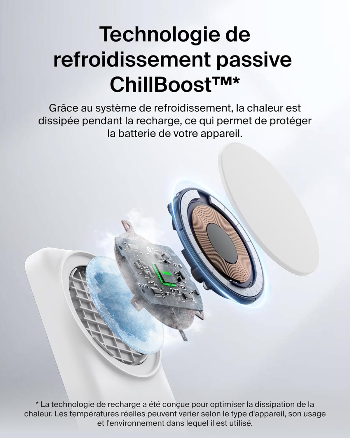 Fiche Technique Belkin UltraCharge 25W Qi2 Induction Charger, 2 in 1 Charging Station for iPhone 17, iPhone Air, AirPods, Pixelsnap, Compatible with MagSafe with USB-C Port and 45W Adapter – White au Maroc