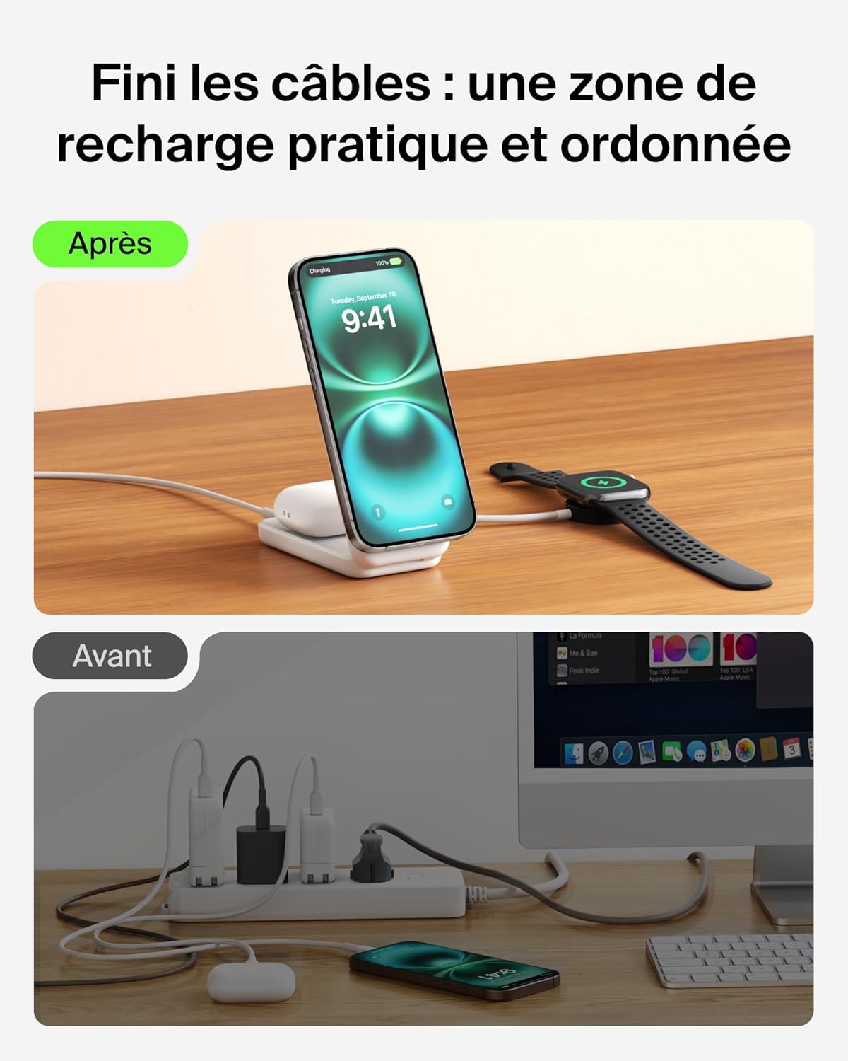 SIMULTANEOUS CHARGING WITH EASY ALIGNMENT: Enjoy fast, simultaneous wireless charging of your iPhone and AirPods before you go on an adventure! Thanks to the magnetic alignment function, simply place your smartphone on the charger and enjoy optimal charging.
