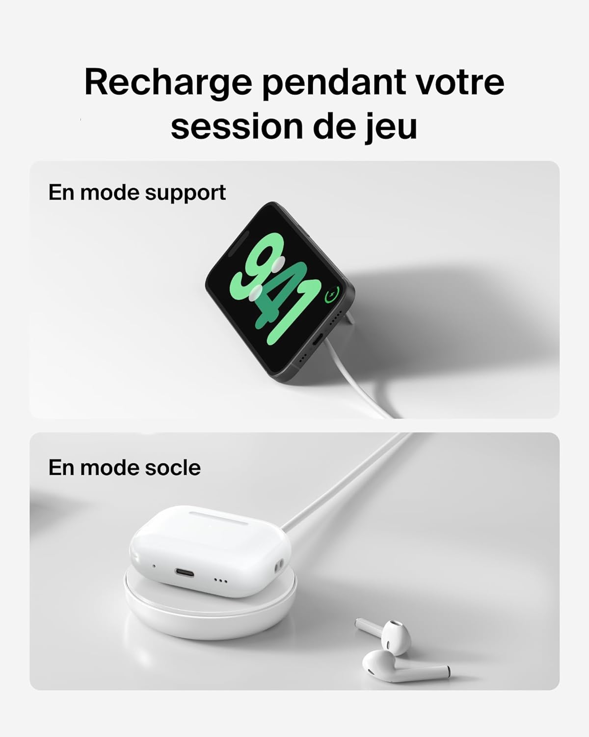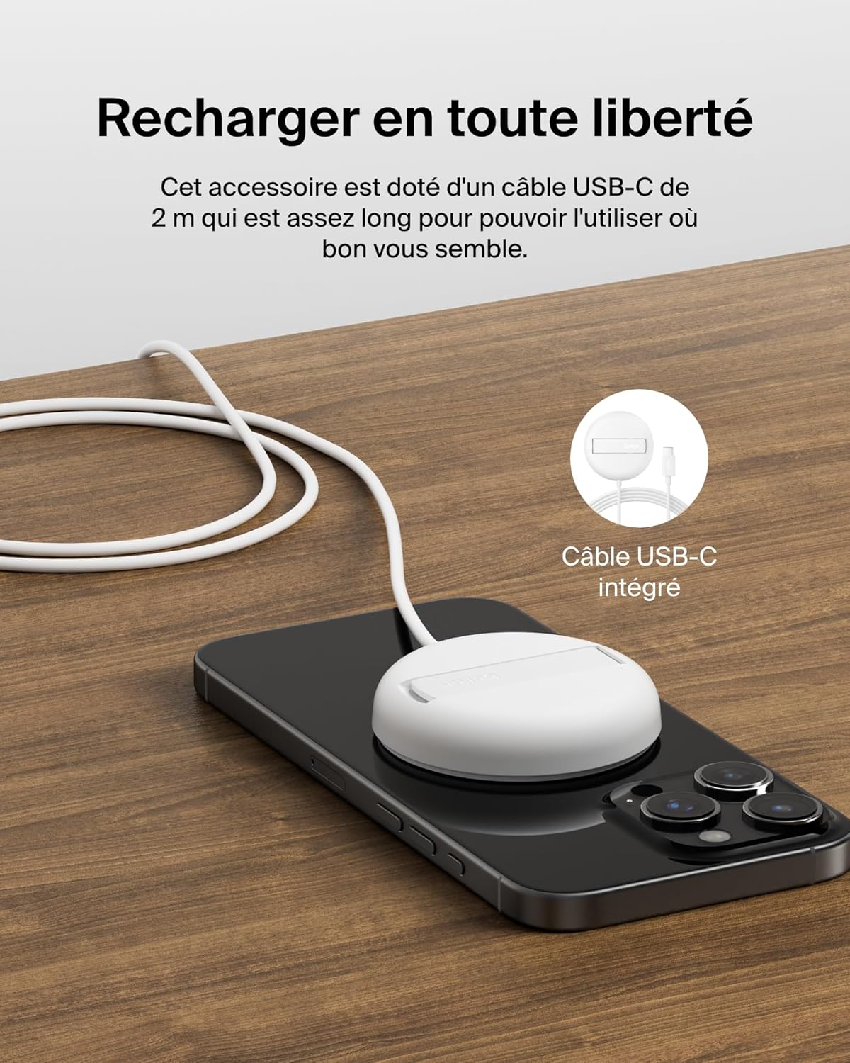 The Belkin BoostCharge Pro Magnetic Charging Dock allows you to quickly charge your iPhone or any other Qi2 device up to 15W. Qi2 allows you to optimize wireless charging and preserve the battery life of your smartphone. This MagSafe accessory simplifies the way you charge your devices with its magnetic alignment feature. It also allows you to charge your AirPods. This product is under 2 year warranty and Belkin GSLMC (up to €2000). DISCLAIMER: Qi2 Belkin products are certified to comply with fast magnetic charging up to 15W on all Qi2 devices. * This accessory works with Samsung S25 (all models), even if the smartphone has a Qi2 protective case. ** Based on internal testing. The Belkin Qi2 (15W) charger charges an iPhone 15 from zero to 50% up to 2 times faster than a 5W Qi charger and up to 1.5 times faster than a 7.5W Qi charger. Charging time varies depending on the environment. Actual results may vary. *** Coating (excluding cables) containing at least 75% post-consumer recycled plastic. Belkin has been the leading accessory brand that has been offering high quality and innovative solutions for over 40 years. Specifications: 15W Fast Wireless Charging Qi2 MPP Certified 2m Cable (USB-C Connectors Included) USB-C PD 20W (AC Adapter Exclusive) Magnetic Force: About 900gF Compatibility: Most PD 3.1 (EPR) / PD 3.0 devices like iPhone 16 Pro Max, iPhone 16 Pro, iPhone 16 Plus, iPhone 16 Plus, iPhone 16 Plus , as well as devices Qi2 like the Samsung Galaxy S25. Made from post-consumer recycled plastic materials (75%) and plastic-free packaging 2-year warranty 2000 € Connected hardware warranty Package includes: BoostCharge Pro Wireless Charging Station with Qi2