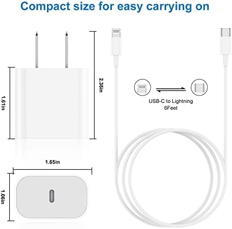 ►【Excellente compatibilité】20 W PD fonctionne avec iPhone 14 13 12 11/Pro Max/Pro/Mini/XS Max/XS/X/XR/8 Plus/8, iPad Pro/iPad Air/iPad, AirPods Pro. La vitesse de charge standard fonctionne avec l’iPhone 7/7 Plus/6s/6s Plus/6/6 Plus/SE/5s/5/5c.