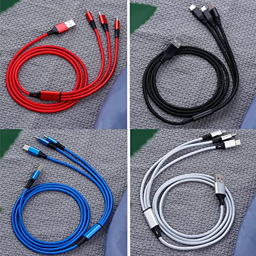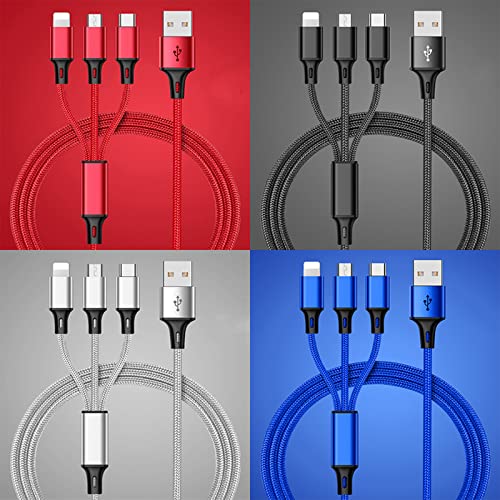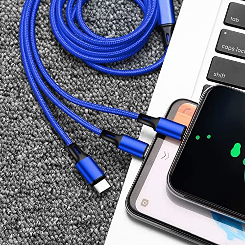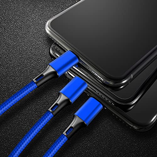 Avis sur Câble de chargeur USB pour téléphone, câble de charge multiple de 1,2 m en nylon tressé, câble USB multiple universel 3 en 1, adaptateur de cordon de charge avec connecteurs de type C, port micro USB pour téléphones portables et plus encore (bleu)