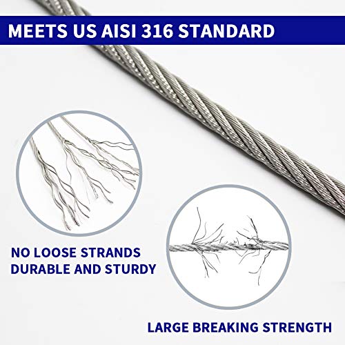 Le Prix Câble en acier inoxydable T316 de 300 m 1/8″ Câble métallique pour avion pour kit de garde-corps de câble de pont, construction 7 x 7 brins, balustrades de bricolage, livré avec un…
