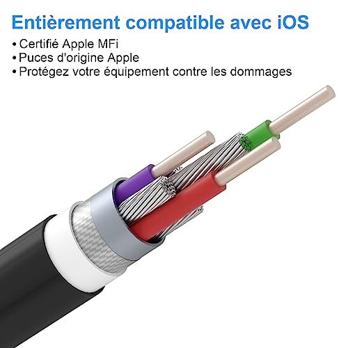 【Ce que vous obtiendrez】: 1 cordon de charge pour iPhone certifié MFi, nous fournissons un service de retour et d’échange gratuit de 30 jours et une garantie après-vente d’un an. Si vous avez des questions, n’hésitez pas à nous contacter.