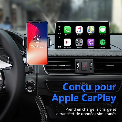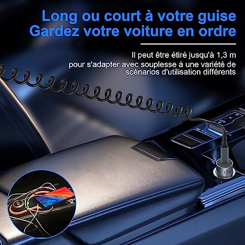 Avis sur Cable iPhone Spirale pour Apple CarPlay[certifié Mfi],Cable iPhone Voiture avec transmission de données et charge rapide,câble USB vers Lightning,Câble Lightning Court pour iPhone/iPad/iPod
