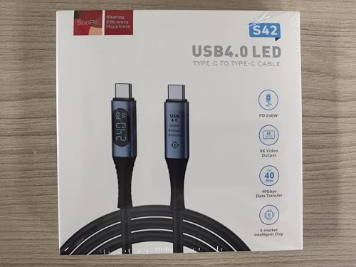 Avis sur Câble SOOPII USB 4 avec écran LED, prend en charge la vidéo 8K, transfert de données 40 Gbit/s, câble de chargement USB C vers USB C 240 W, compatible avec iPhone 15, MacBook, moniteur Thunderbolt 4, stations d’accueil
