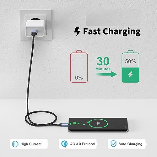 Fiche Technique Câble USB C de 2 pieds, [3-Pack] Câble Android Auto 3A Charge rapide 0,6 m court USB TypeC tressé USB A vers type C Cordon de chargeur pour Samsung Galaxy S23 S22 S21 S20 Ultra S10 S9, Google Pixel, Moto G53