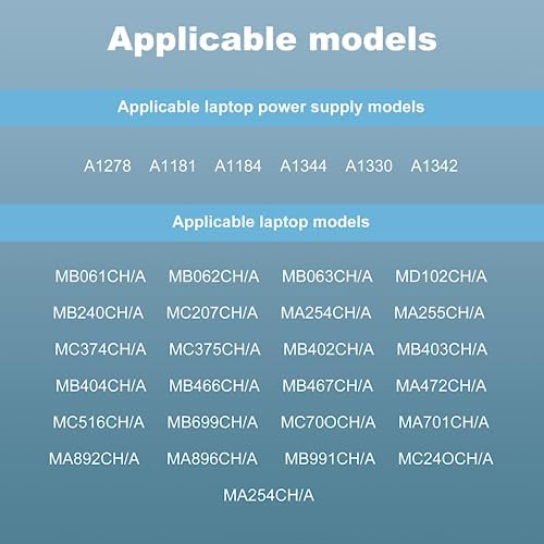 Compatible avec les modèles Mac Book : convient aux modèles A1344, A1330, A1342, A1278, A1185, A1184, A1181, A1435. Convient aux Mac Book Pro (13 pouces, mi-2012), convient aux Mac Book Pro (13 pouces, fin 2011), convient Mac Book Pro (13 pouces, début 2011),Convient au Mac Book Pro (13 pouces, mi-2010),Convient au Mac Book pro (13 pouces, mi-2010),Convient au MacBook pro (13 pouces, fin 2009)