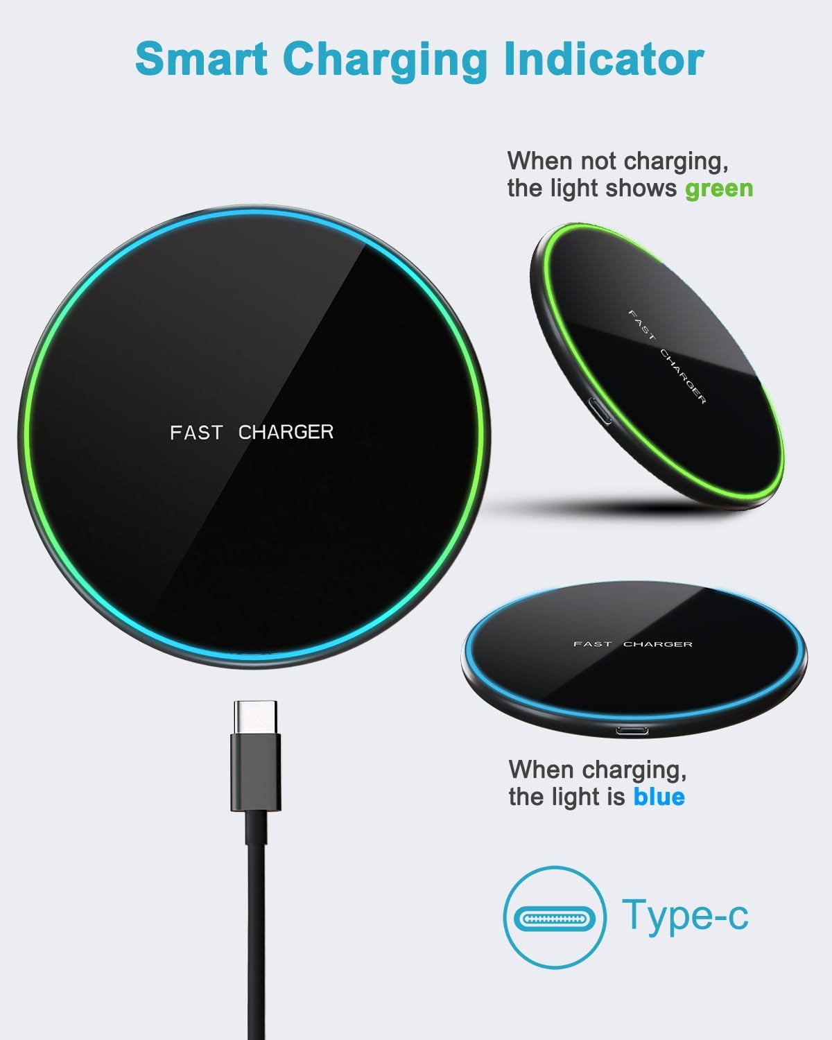 Attention : Avant d’utiliser ce chargeur iPhone sans fil pour recharger votre appareil, vous devez connecter le chargeur sans fil iphone 15 pour la recharge au câble de recharge et au chargeur USB C, le voyant de charge vert du chargeur sans fil s’allume pour la recharge.