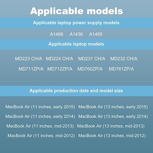 Entièrement compatible : numéro de pièce : A1436 A1466 A1465 A1435 ; Compatible avec Mac book Air (13 pouces, mi-2012) ; Compatible avec Mac book Air (11 pouces, mi-2012) ; Compatible avec Mac book Air (13 pouces, mi-2013) ; Compatible avec Mac book Air (11 pouces, mi-2013) ; Compatible avec Mac book Air (13 pouces, début 2014) ; Compatible avec Mac book Air (11 pouces, début 2014) ; Compatible avec Mac book Air (13 pouces, début 2015) ; Compatible avec Mac book Air (11 pouces, début 2015)
