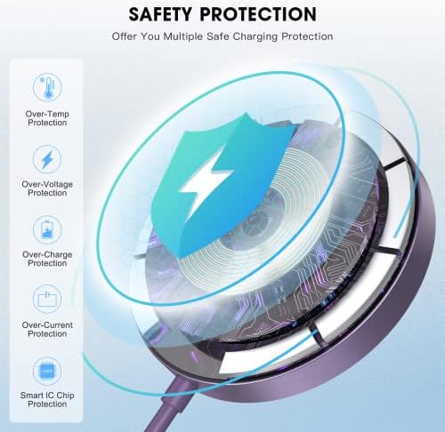 Sécurité supérieure : le chargeur de téléphone magnétique sans fil empêche le chargeur et votre téléphone de surcharger, de surintensité, de surtension, de surchauffe et de courts-circuits. Vous offre une expérience de charge meilleure et plus sûre. La conception magnétique optimisée facilite la charge, améliore la conversion d’énergie et réduit la chaleur pendant la charge.