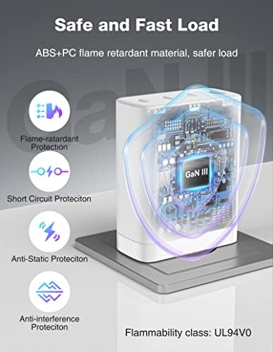 Conception compacte et légère : la taille de ce chargeur de téléphone est de 2,9*2,4*1,1 pouces, soit 40 % plus petite qu’un chargeur MacBook Pro 16″ 96 W. La conception des épingles pliables vous permet de le transporter dans n’importe quel sac pour sortir.