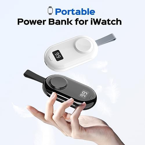 Le Prix Chargeur portable pour Apple Watch, banque d’alimentation magnétique sans fil 3000 mAh pour iWatch Series 8/UItra/7/6/SE/5/4/3/2 et téléphone. (Noir)