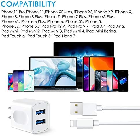 Avis sur Chargeur pour iPhone, adaptateur de voyage mural à 2 ports USB avec câble Lightning certifié MFi de 3 pieds compatible avec iPhone 11 Pro Max/11 Pro/11/Xs Max/Xs/XR/X/8/7/6/SE et plus