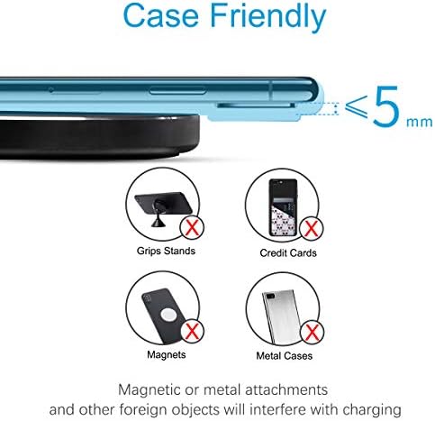 Compatible avec les coques : coque de téléphone compatible avec un rayon de 0,2 pouce (5 mm). Si le voyant clignote ou si le téléphone n’a pas demandé de chargement. Veuillez vérifier le dos du téléphone s’il est attaché ou non à des pièces de monnaie, des cartes IC, des cartes bancaires, etc. (pour une meilleure expérience, veuillez retirer l’étui).