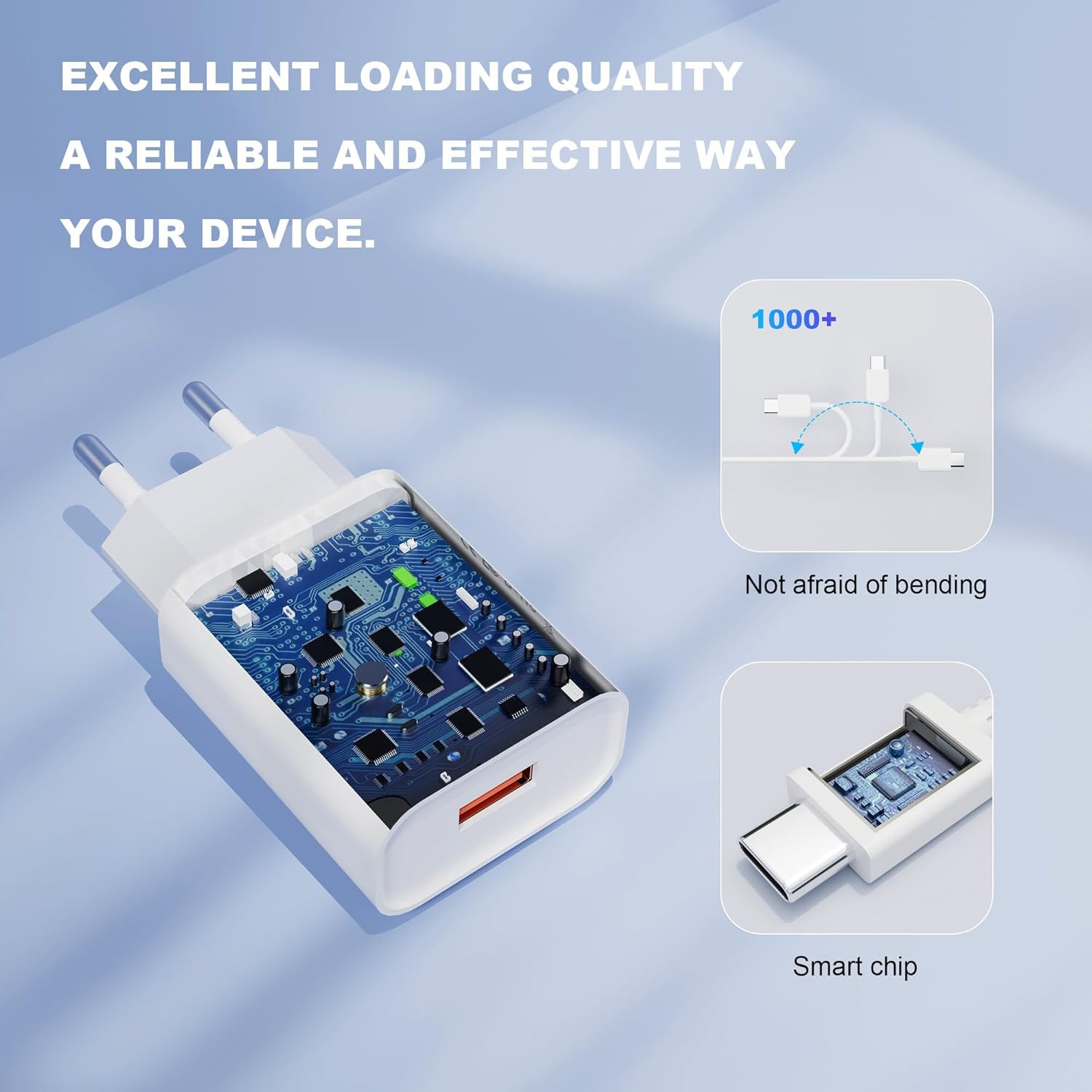 Avis sur Chargeur Type C Charge Rapide pour Samsung Galaxy A54,A52S,A53,A34,A14,S23,S22,S21,S20 FE,S10,S9,S8 Plus,Z Flip3,Z Fold3,M53 5G, LG, Xiaomi Note9, Huawei, Google Téléphone, avec 2m Câble USB C
