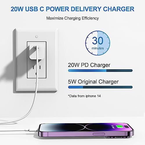 Fiche Technique Chargeur USB C 20 W Prise de charge rapide pour iPhone 【Certifié Apple MFi】 Chargeur mural de type C pour iPhone 14 Pro/14 Pro Max/14 Plus/13/13 Pro Max/12/12 Pro Max/11