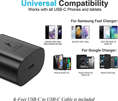 Chargeur de type C largement compatible : notre adaptateur secteur USB C est largement compatible avec Samsung Galaxy S23 Ultra/S23/S23+/S22/S22 Ultra/S22+/S21 Ultra/S20 Ultra/Note 20/Note 10/Z Fold 3, S9, S9+ Plus, S8, S8+ Plus/Active, A70, A80, S10, S10 plus, Google Pixel, Pixel 2, Pixel 3, Pixel XL, Pixel 2XL, Pixel 3XL, Pixel 4XL, Pixel 3A, LG G7 Thing, G8, G6 , G5, Stylo 4, V20, V30, etc.